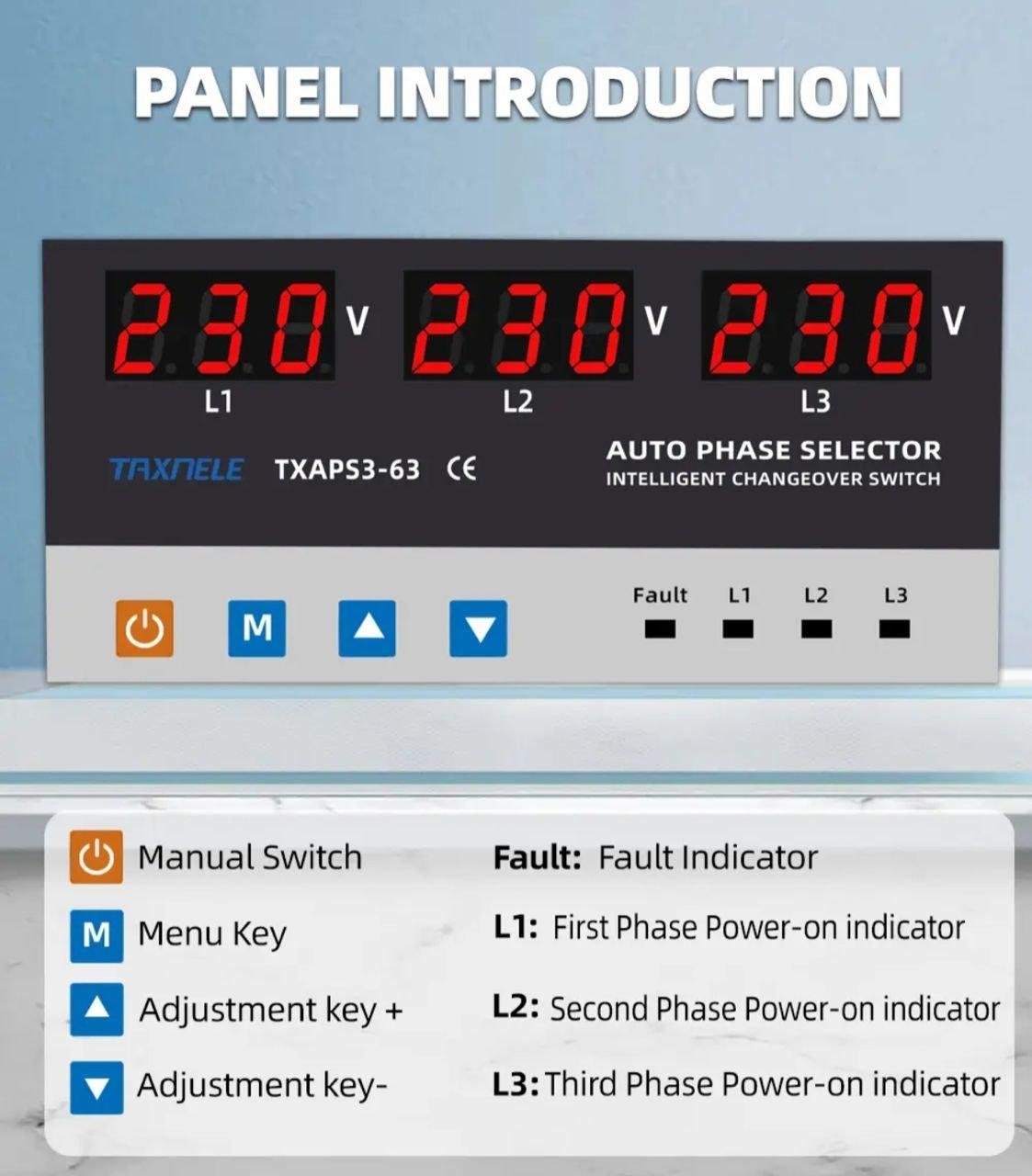 It can also instantly cut off the power supply in case of an overcurrent fault on the phase, in order to protect the electrical equipment from damage.