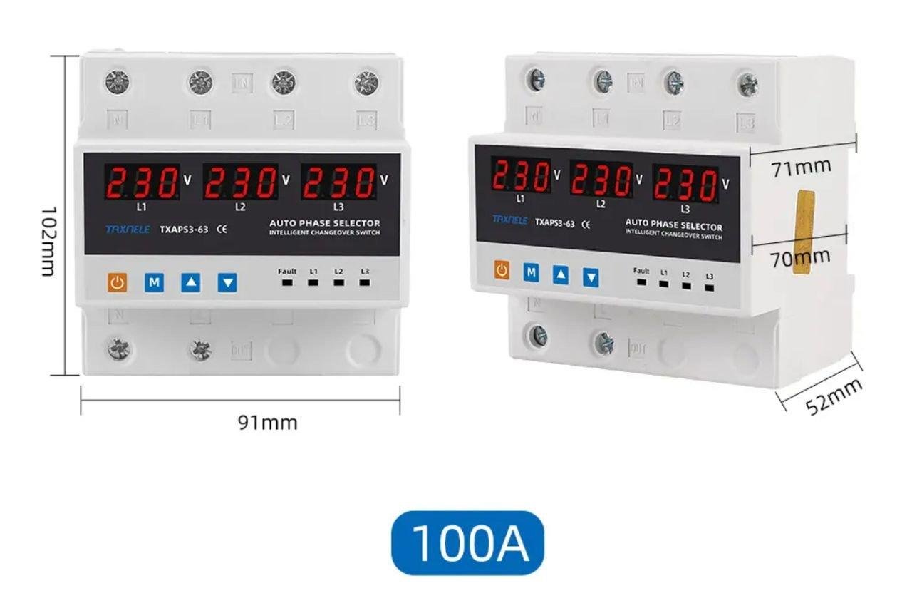 Automatic three-phase electronic phase selector 63A 100A with protection against over-voltages and under-voltages